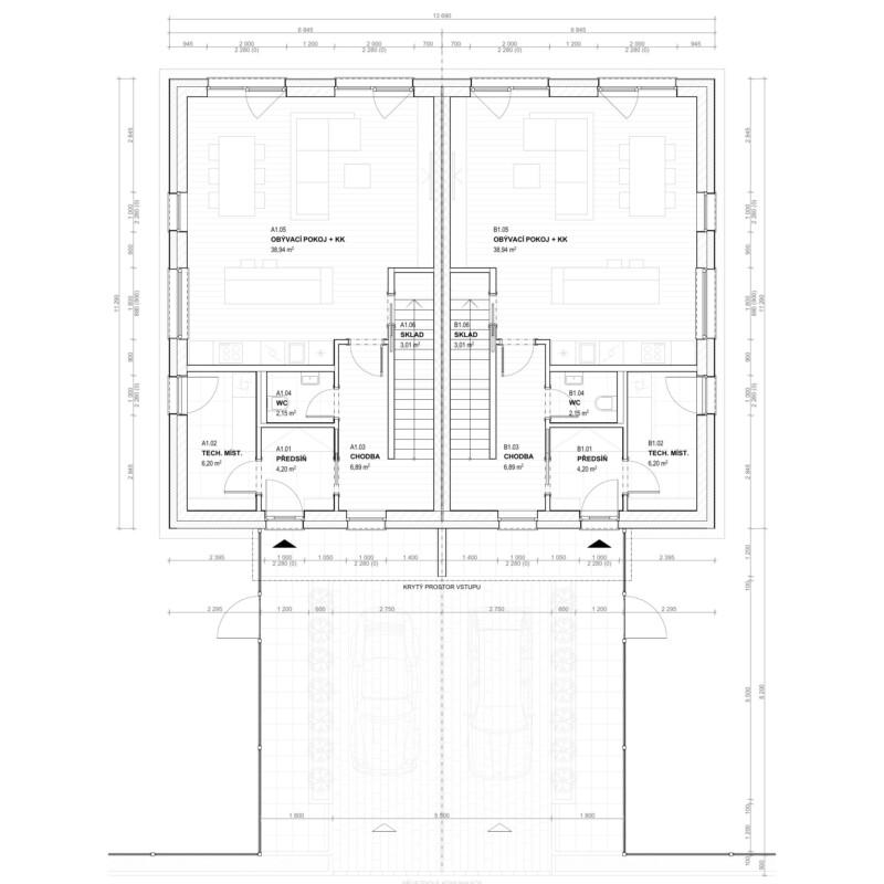 A1.05Obývací pokoj + kuchyň38.94 m²